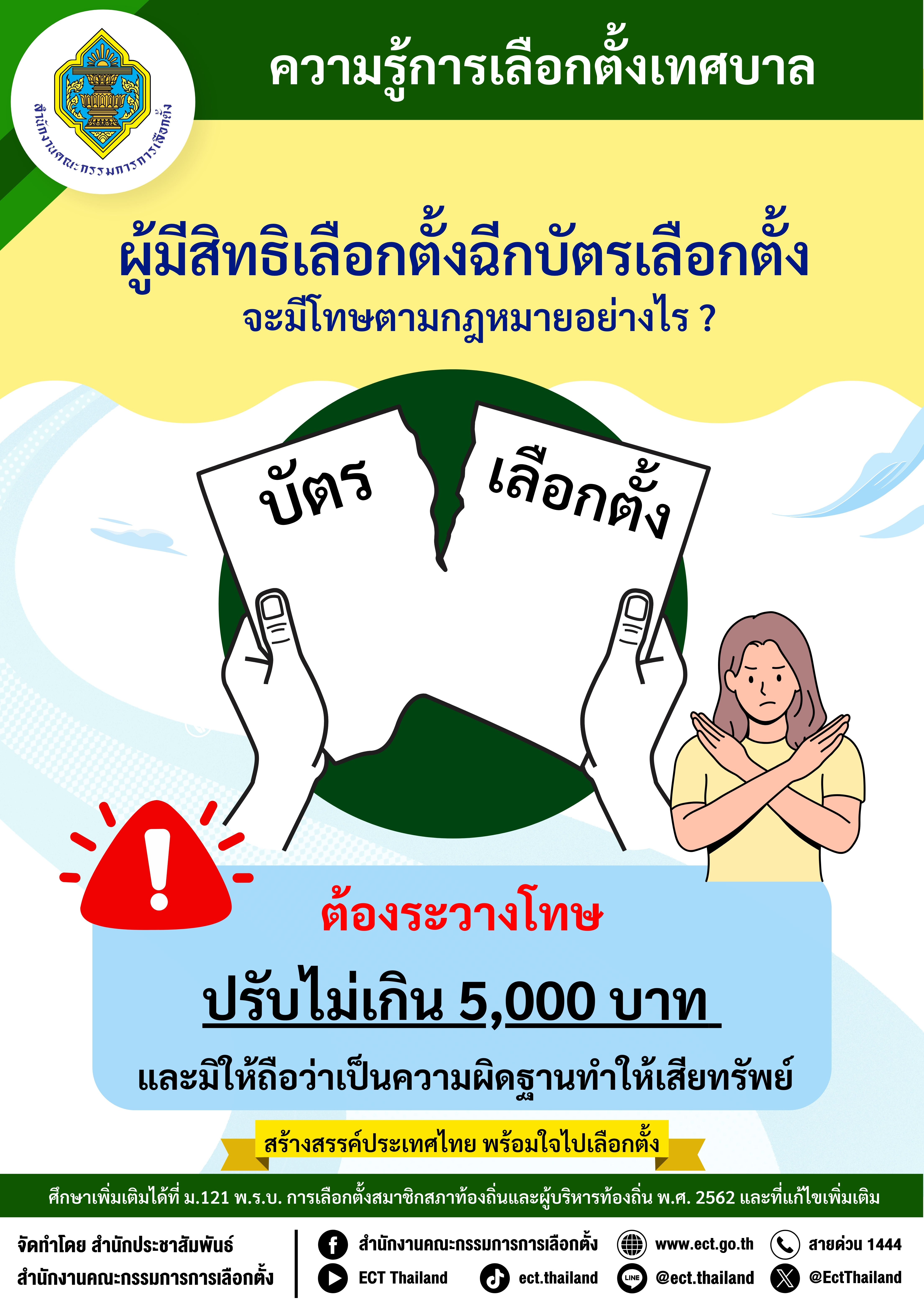| ผู้มีสิทธิเลือกตั้งฉีกบัตรเลือตั้งเทศบาลจะมีโทษตามกฎหมายอย่างไร