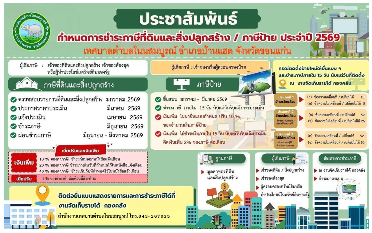 ประชาสัมพันธ์การชำระภาษีที่ดินและสิ่งปลูกสร้าง / ภาษีป้าย ประจำปี 2569
